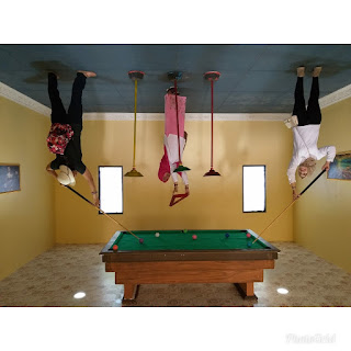 Rumah terbalik berlokasi disebelah water boom. Awalnya agak malas juga, tapi pas masuk wahh adem dan asyik juga dengan foto-foto dengan properties yang berada diatas kita, kreatif euy... cuma gak pinter untuk foto nya, jadi petugasnya yang fotoin kita, beda dengan trik art loh....